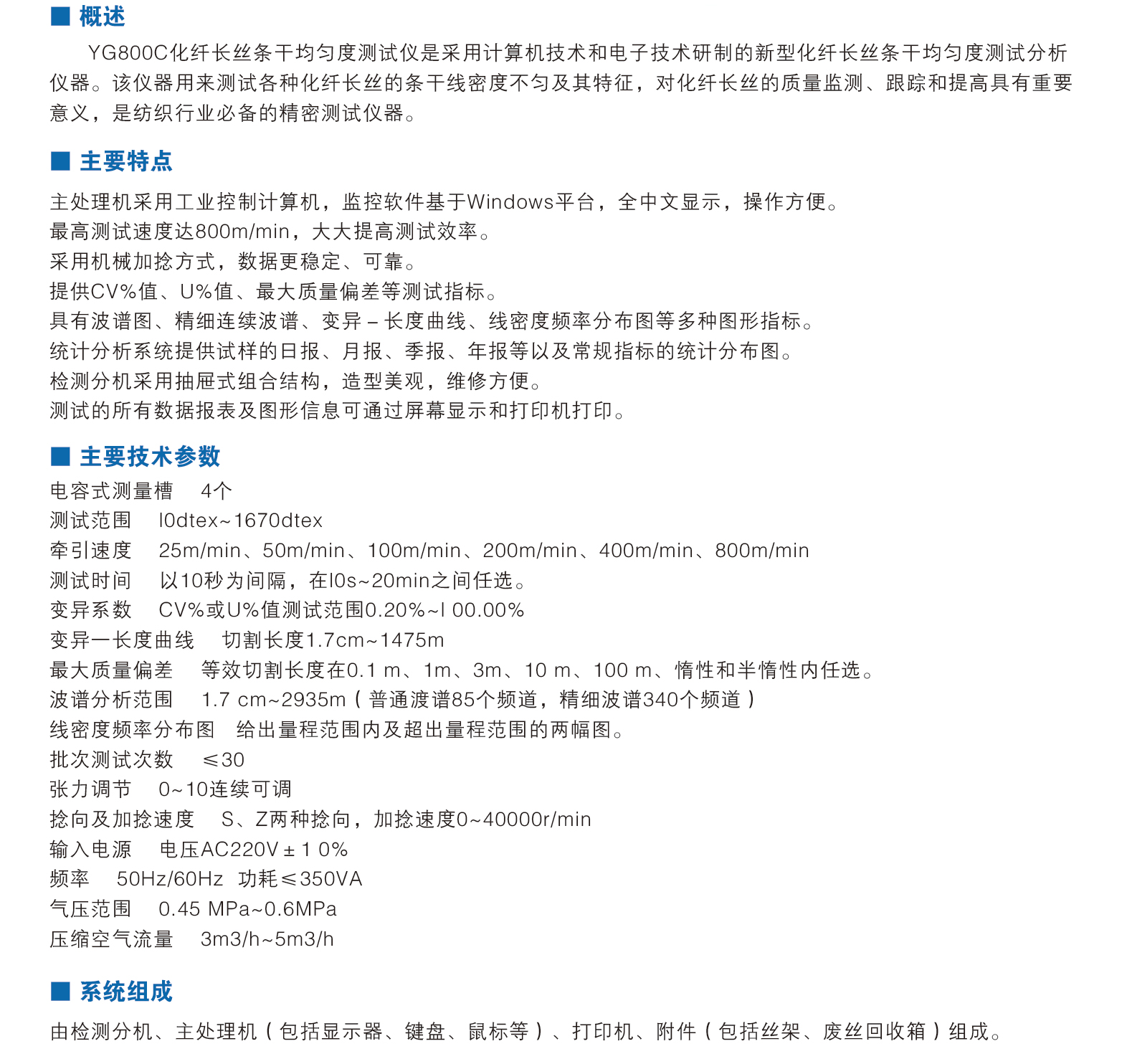 主營(yíng)產(chǎn)品:強(qiáng)力機(jī),長(zhǎng)絲卷縮率測(cè)試儀,化纖檢測(cè)儀器